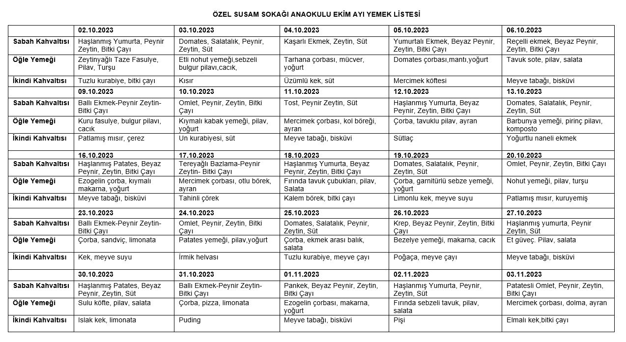 Ekim Ayı Yemek Listesi